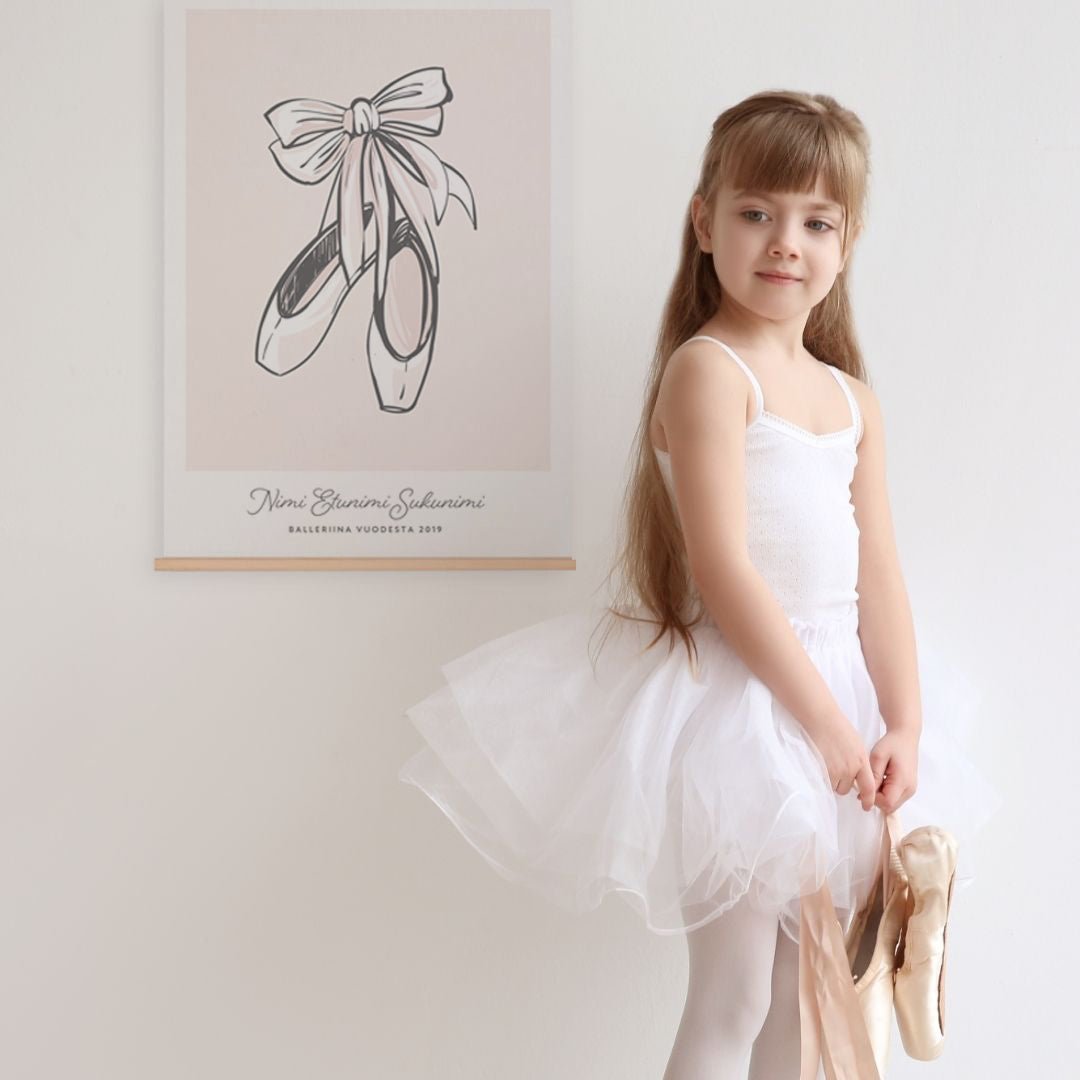 The ballerina poster is a lovely decoration element for a child who is into ballet. The text below the image can be edited with your own text, making the image more personal.