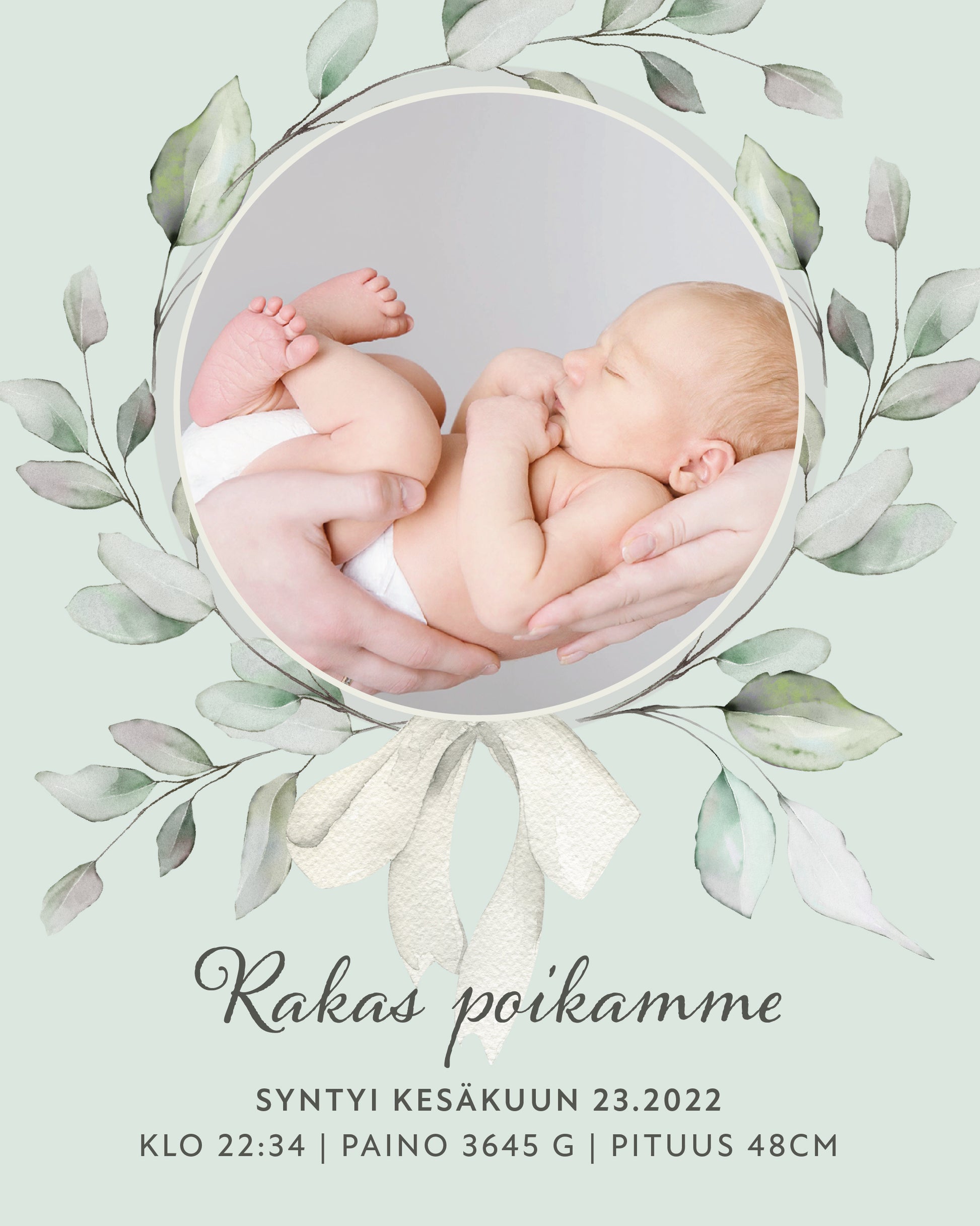 The image size of a digital birth announcement is well suited for, for example, an Instagram story, or for sending as a traditional image, e.g. as a text message.