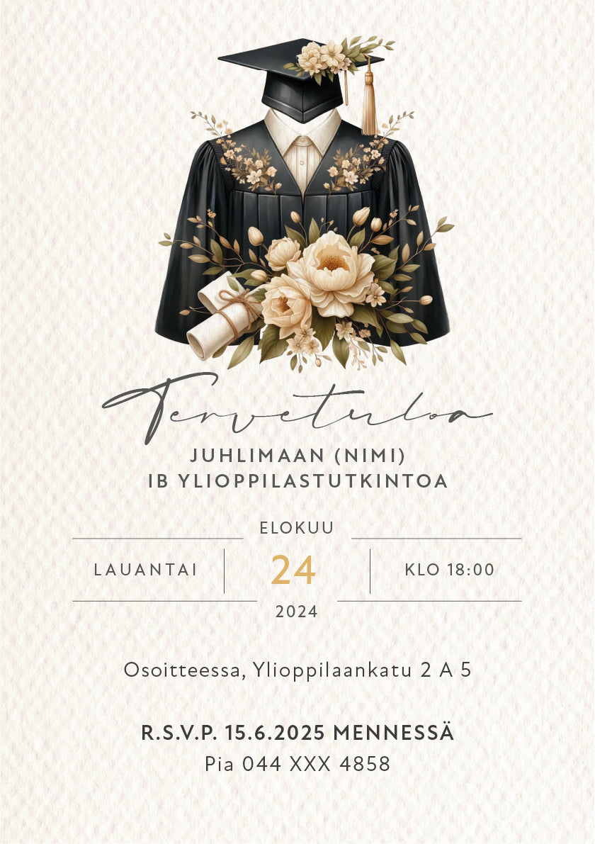 A digital invitation is an ecological and fast choice. You will receive it directly to your email, from where you can forward it to the recipient.