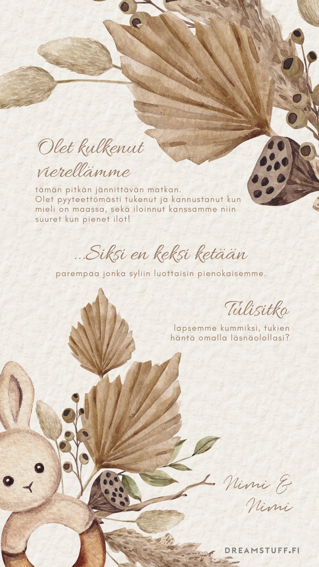 A digital invitation is an ecological and fast choice. You will receive the invitation as a jpg image directly to your email, from where you can forward it to the recipient via various messaging channels such as WhatsApp.