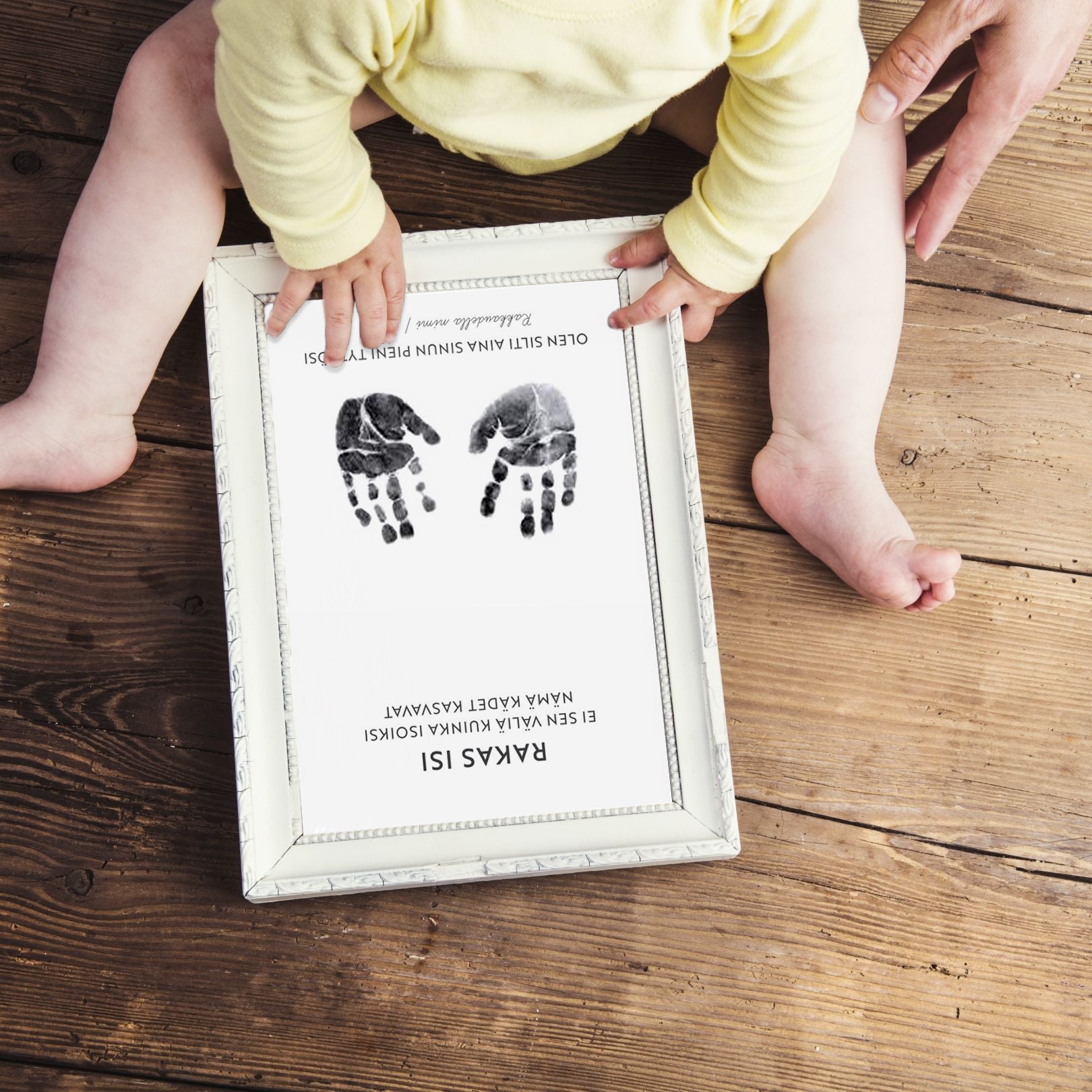 Click "Personalize product", after which the editor will open. Select the desired text option / template and add your own text at the bottom of the image, e.g. "With love, (Name and date)"