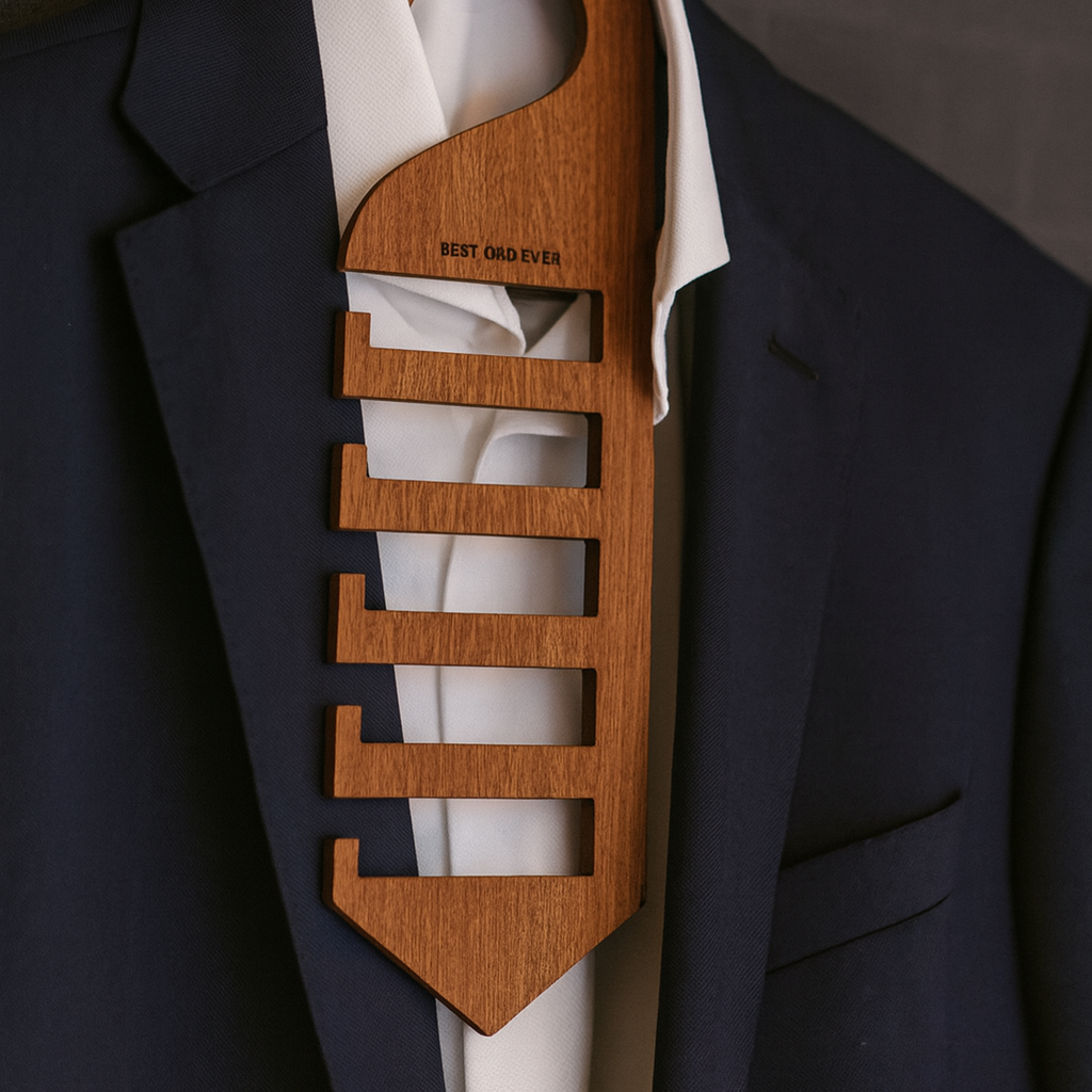 Kravattitelineessä on vakio teksti "BEST DAD EVER" mutta voit halutessasi tilata telineen omilla nimikirjaimillasi ja nimellä (mallin mukaan). Nimikoitu kravattiteline on täydellinen lahja isälle, puolisolle tai ystävälle, joka käyttää kravattia arjessa tai juhlassa.