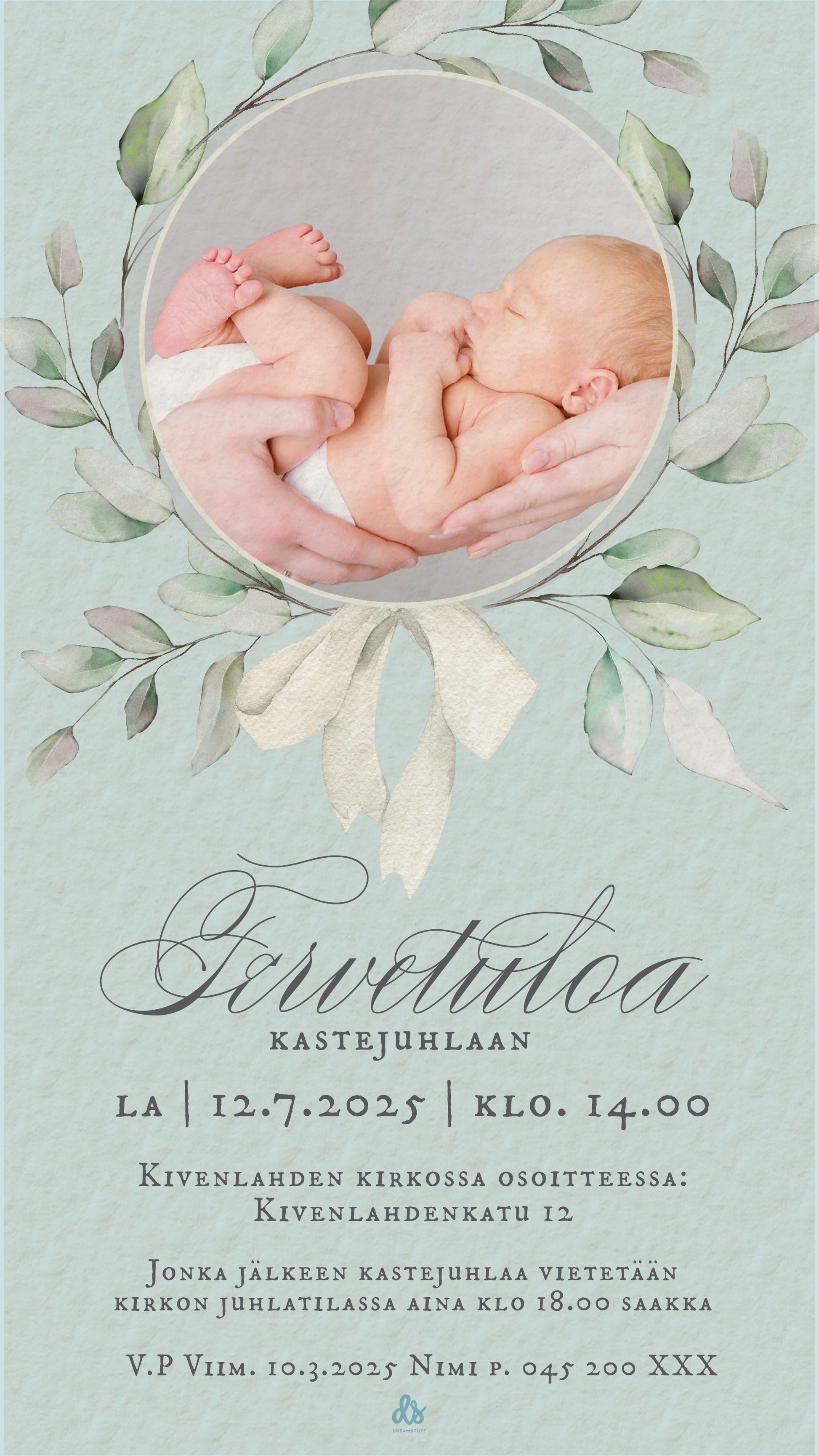 Digitaalinen kutsu kastejuhlaan / nimiäisiin omalla kuvalla - Sininen