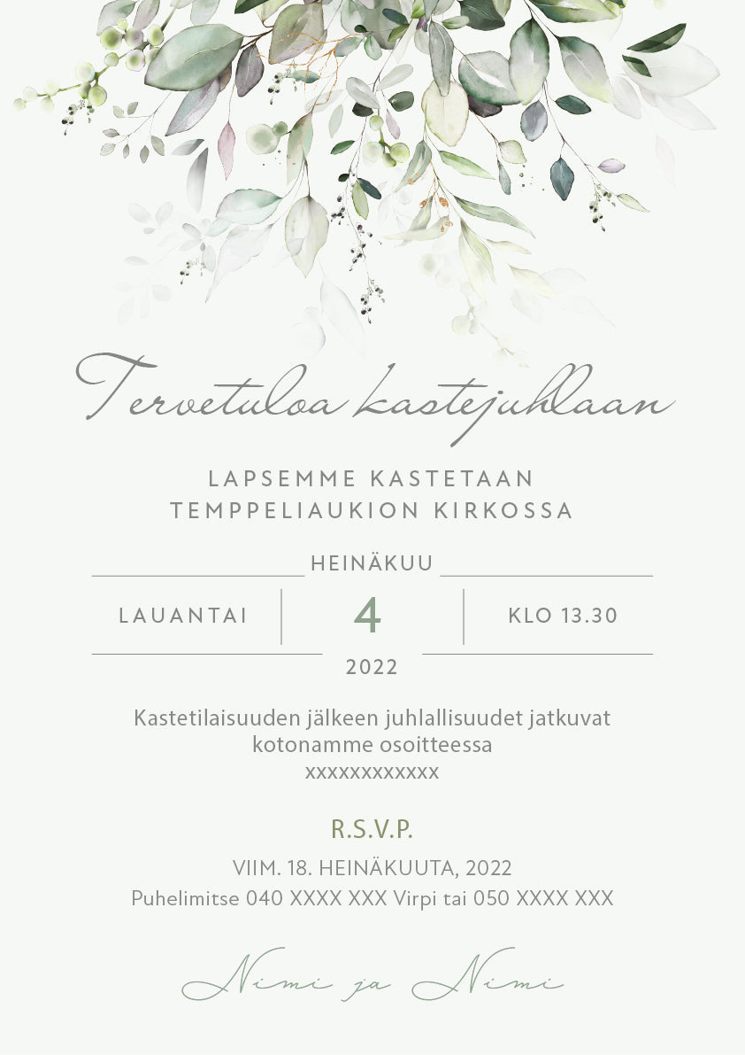 Digitaalinen kutsu kastejuhlaan / nimiäisiin - Lehdet