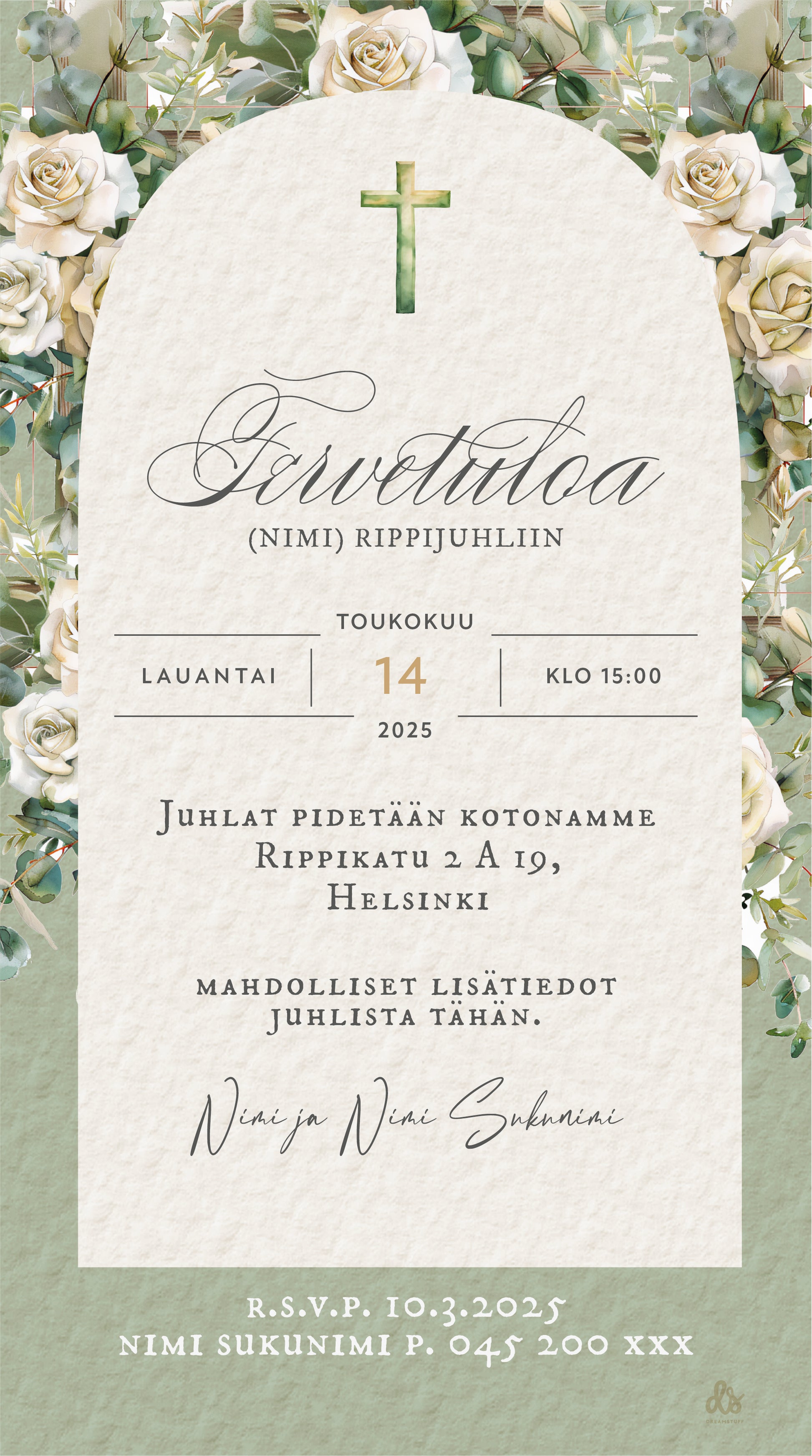Digitaalinen kutsu rippijuhlaan - Valkoiset ruusut