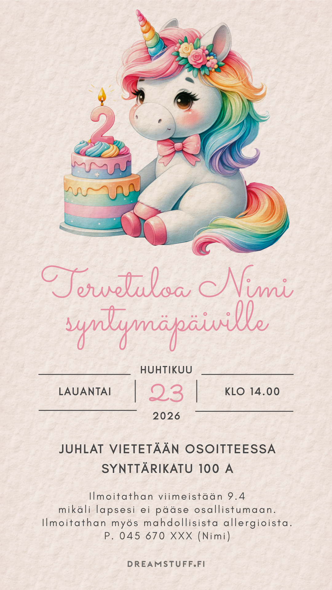 Digitaalinen lastenkutsu - Yksisarvinen 2 vuotta