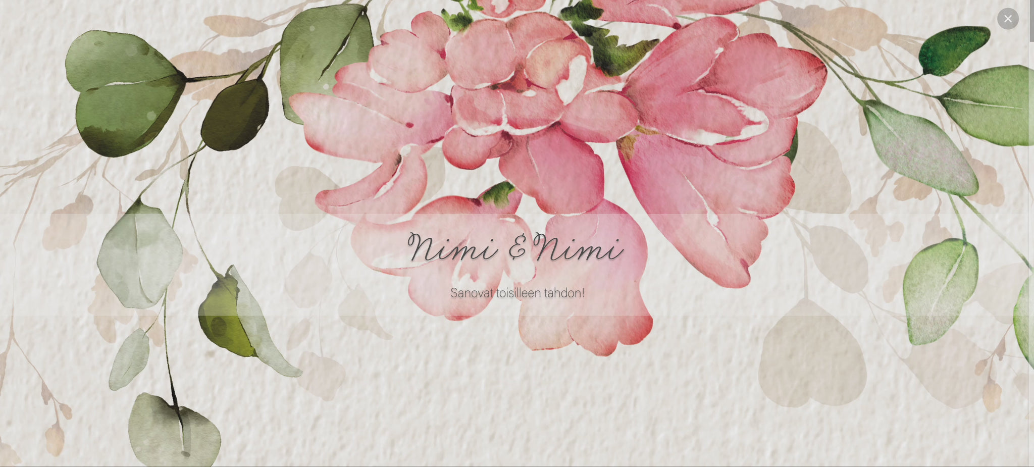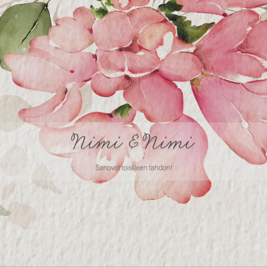 - Muokkaa Save the Date ja kutsu: nimet, päivämäärä, aika, paikka, kuvat ja tekstit.