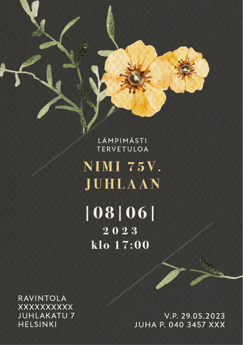 Digitaalinen syntymäpäiväkutsu aikuisille - Keltaiset kukat
