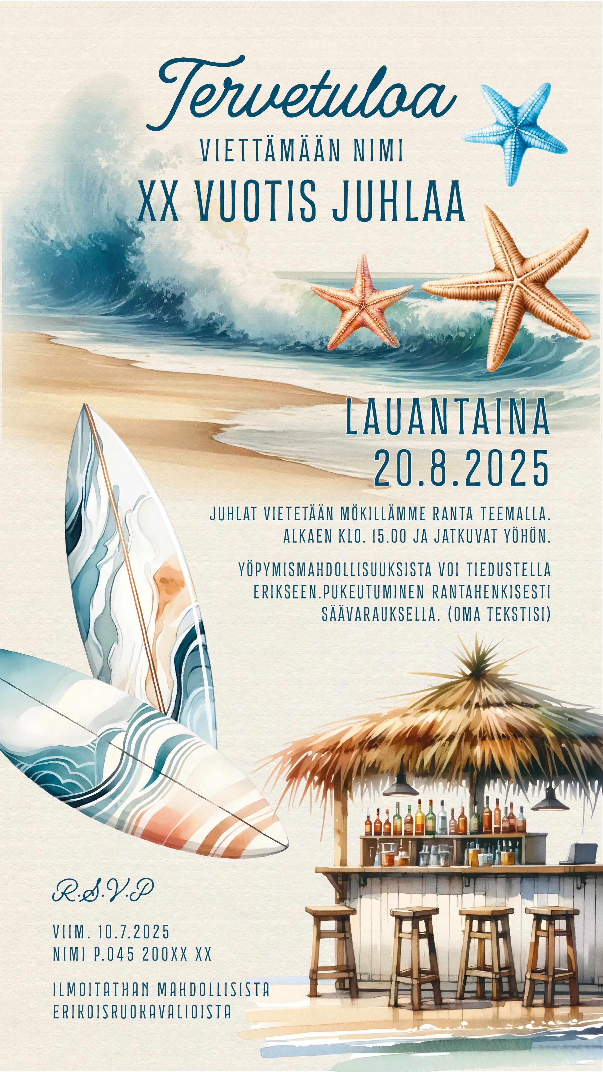 Digitaalinen kutsu on ekologinen ja helppo tapa kutsua vieraat juhliin. Saat personoidun kutsun sähköpostiisi JPG-muodossa 48 tunnin sisällä tilauksesta arkipäivisin. Muista jättää tilauksen yhteydessä toimiva sähköpostiosoitteesi – kutsua voi tarvittaessa muokata kerran sen toimituksen jälkeen.