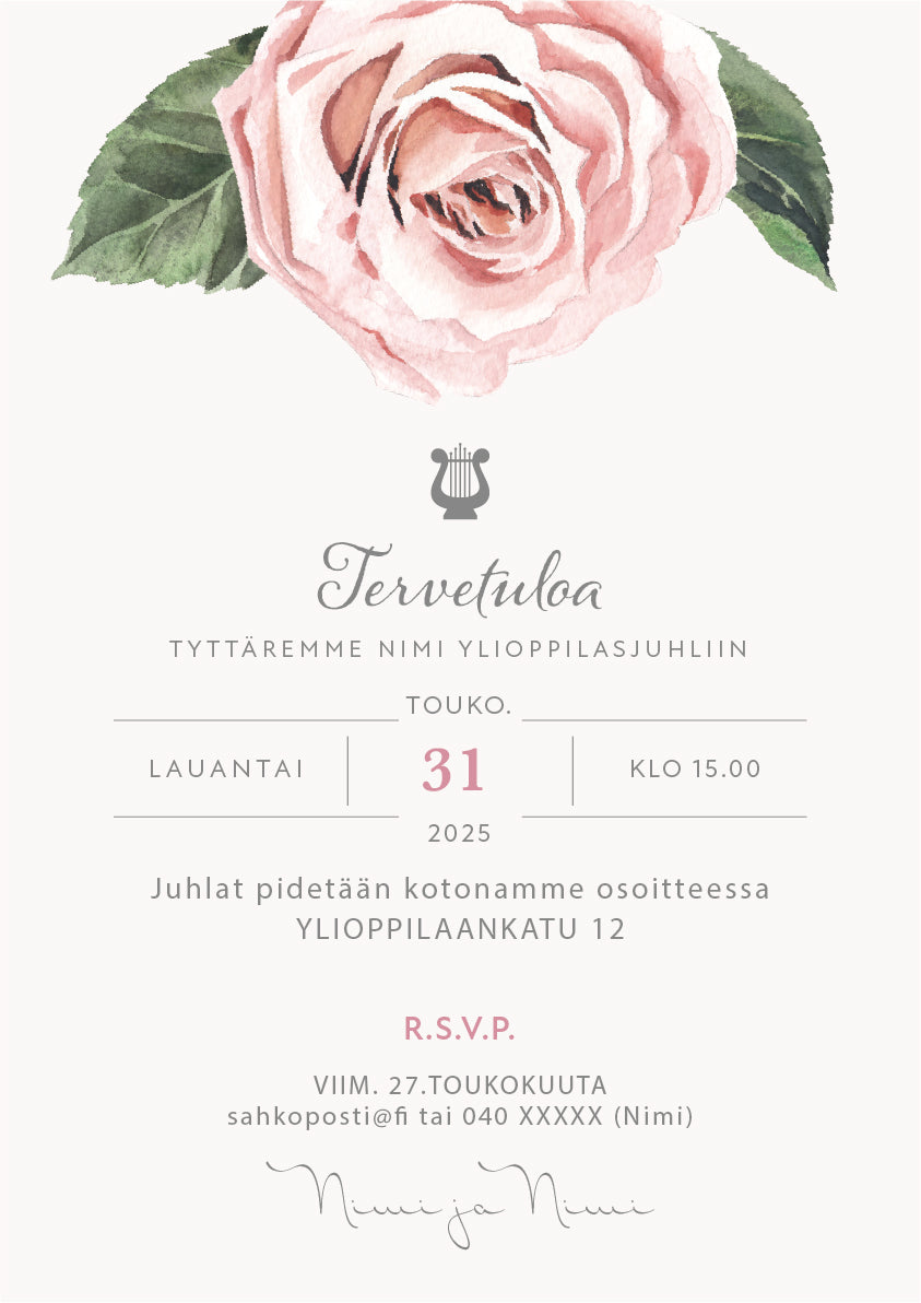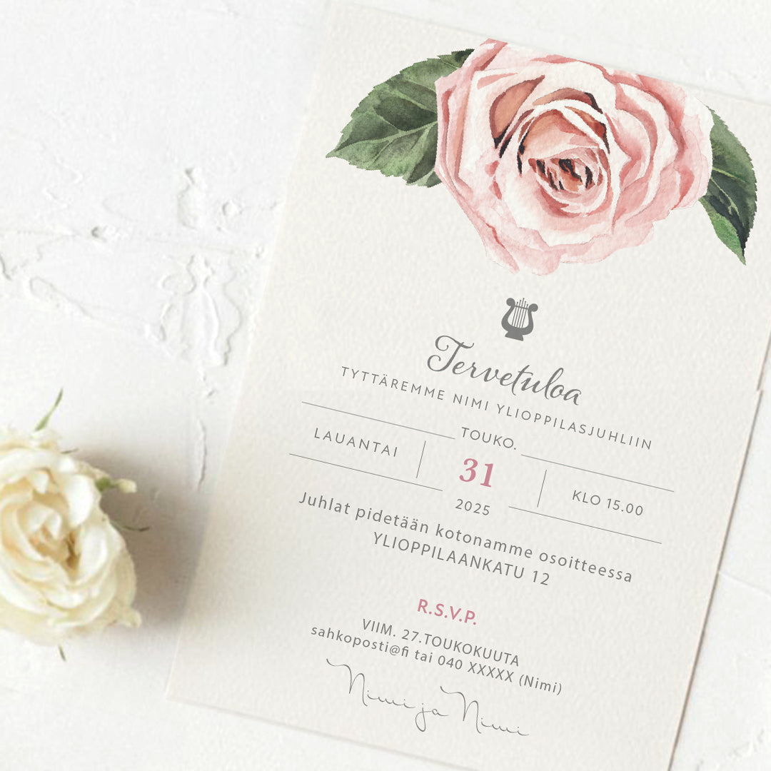 Tulosta itse kutsu ylioppilasjuhlaan - Ruusu
