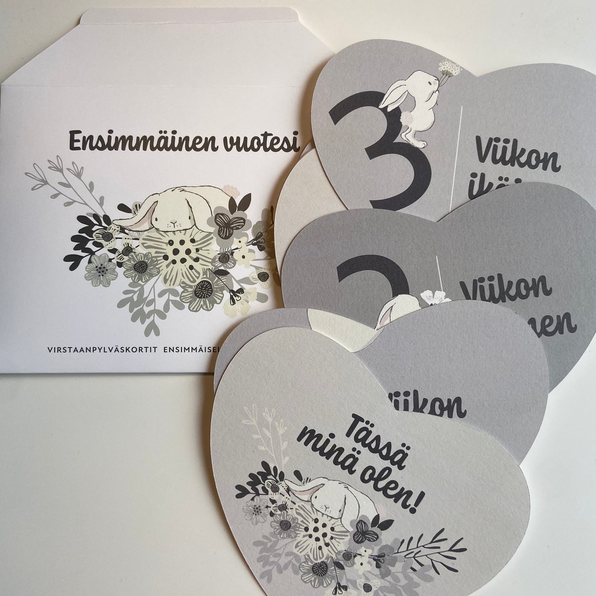 Ikuista vauvasi ensimmäinen vuosi kovaan suosioon nousseilla virstanpylväs (englanniksi Milestone) korteilla. Ota kuva lapsestasi kortin kanssa, niin saat hauskoja muistoja kasvuvaiheista niin omaan perhealbumiin kuin sosiaaliseen mediaankin.