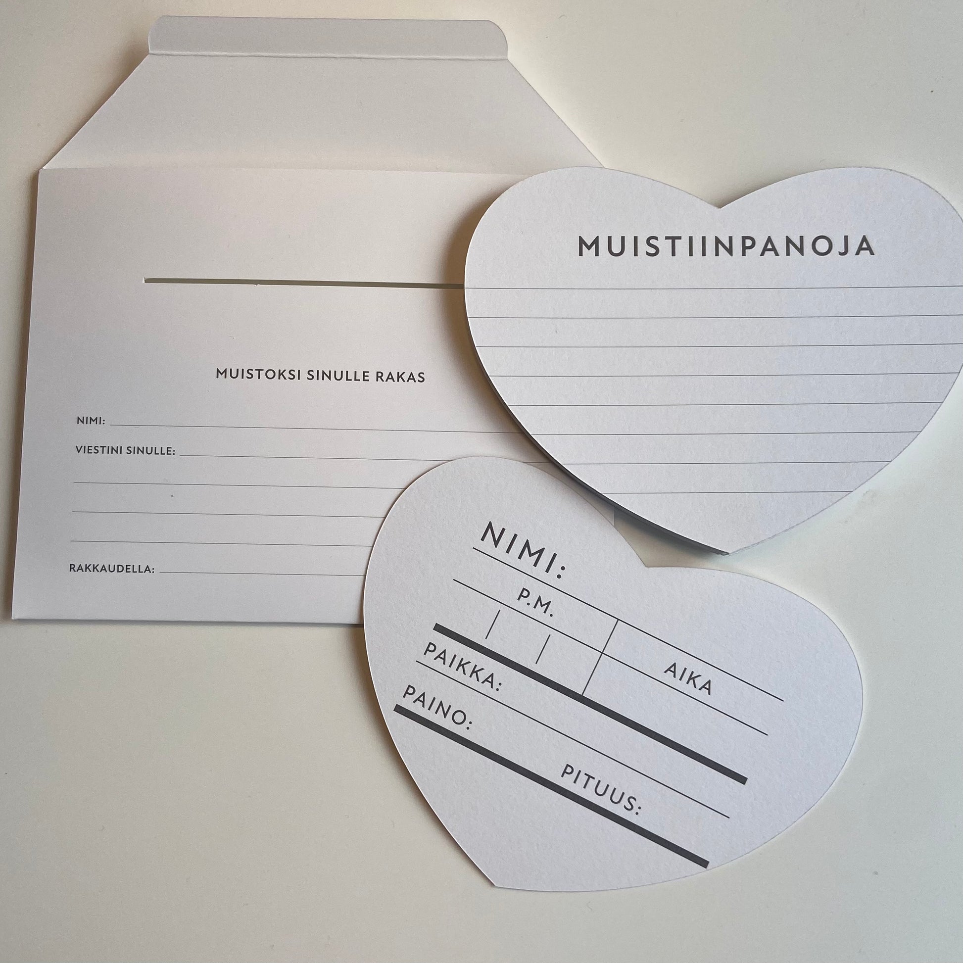 Ensimmäisen kortin taustapuolelle voit täyttää lapsen syntymätiedot, muiden korttejen takana on tilaa muistiinpanoille esim. lapsen kehitysvaiheista.