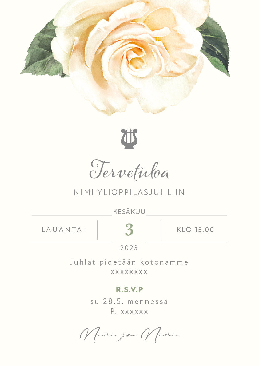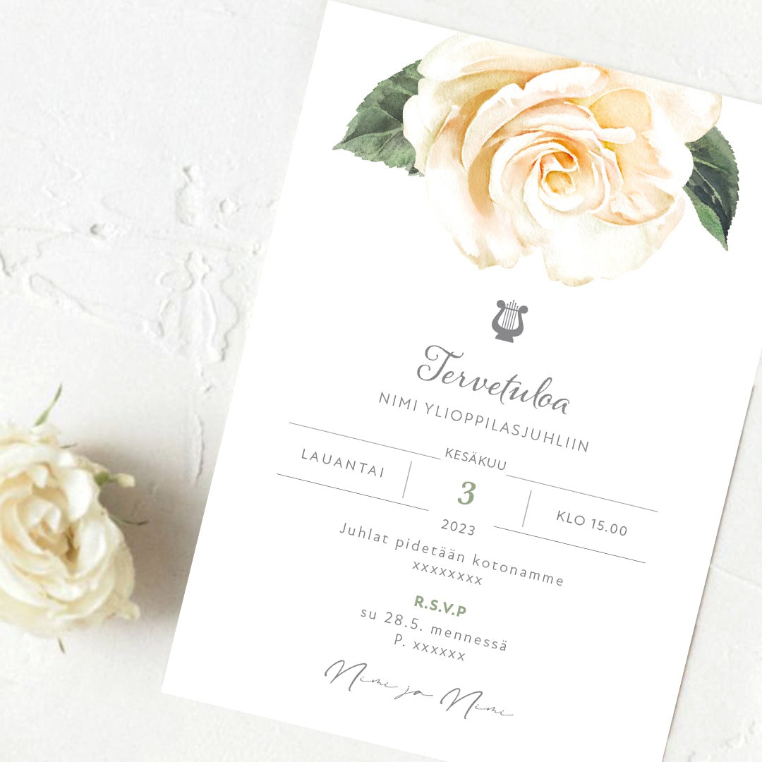 Tulosta itse kutsu ylioppilasjuhlaan - Valkoinen ruusu