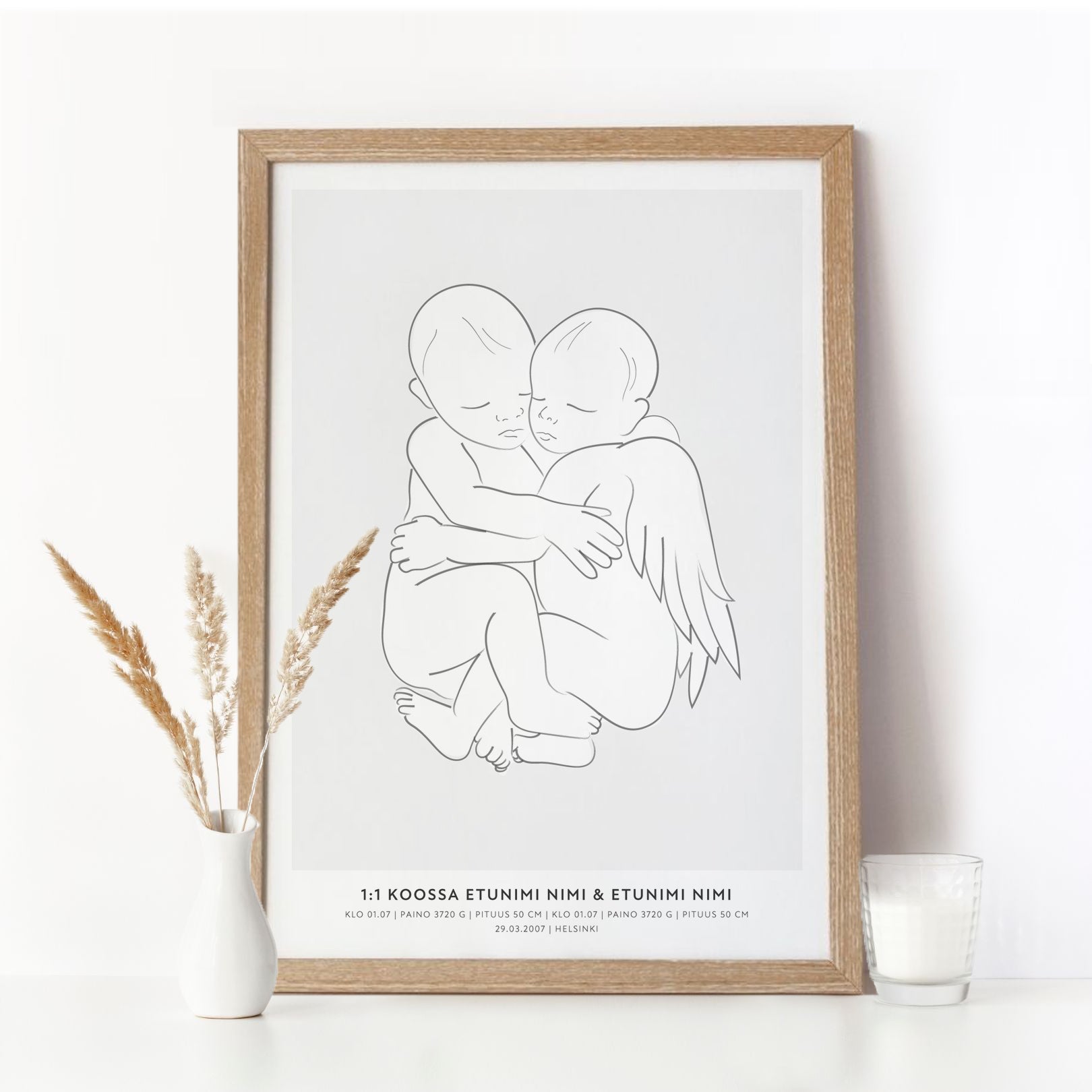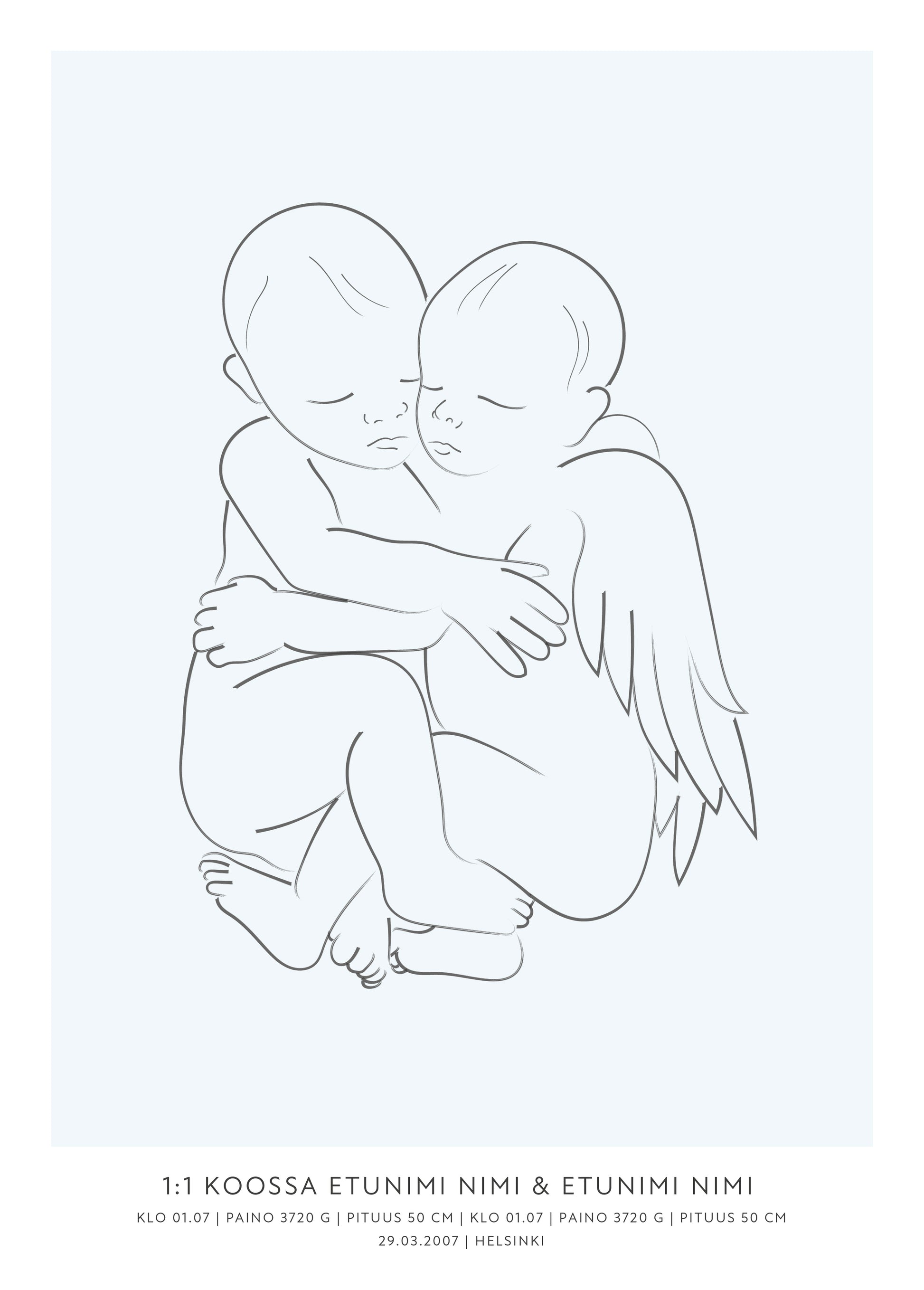- Kirjoita viestikenttään että haluat siivet vauvalle. Jos kyseessä on syntymäjuliste kahdelle tai kolmelle niin kerro mikä vauvoista on enkelivauva.