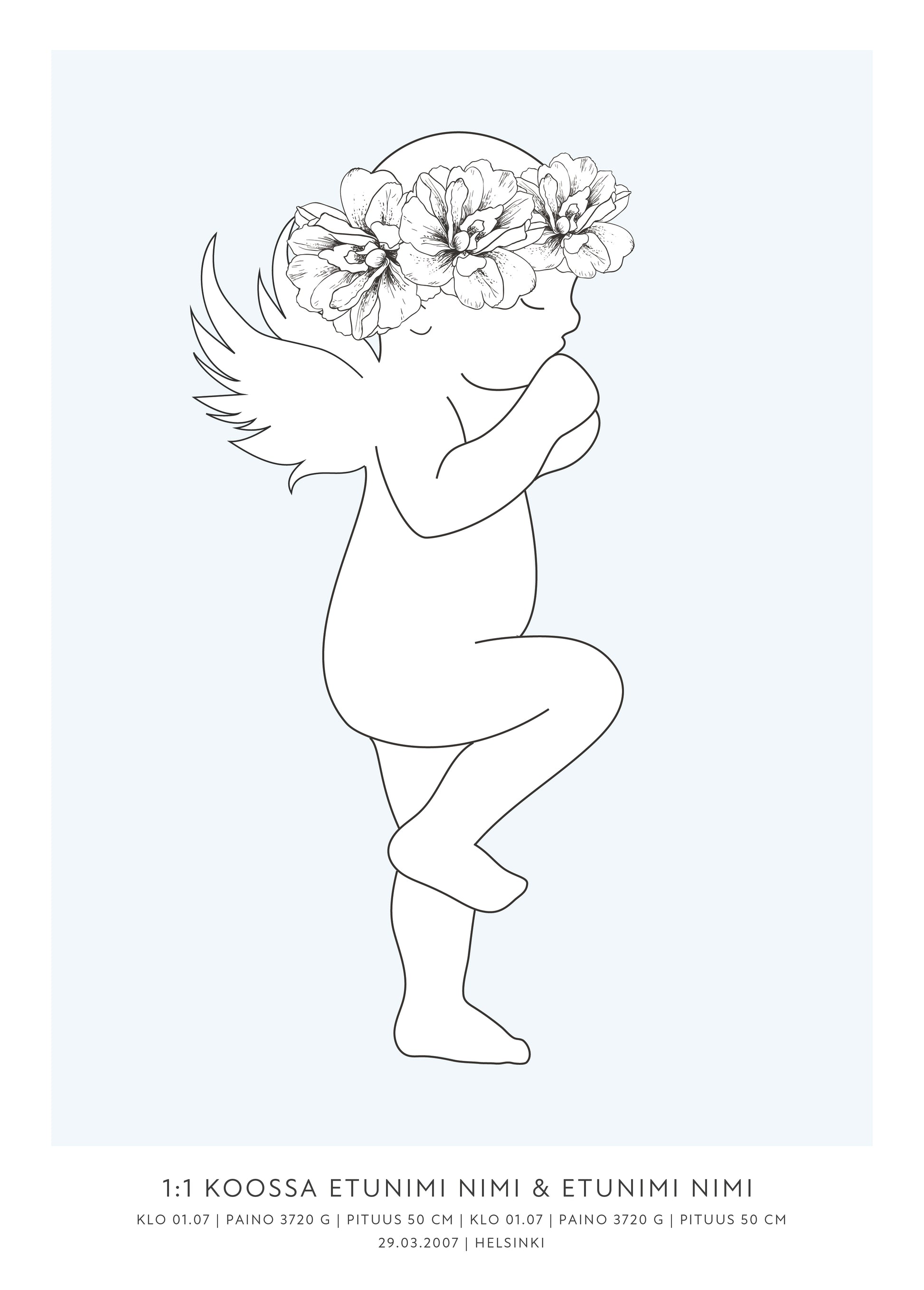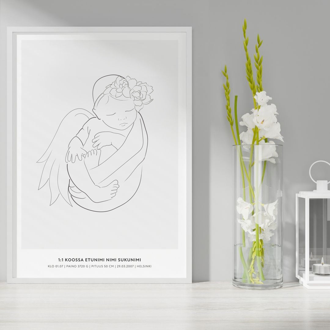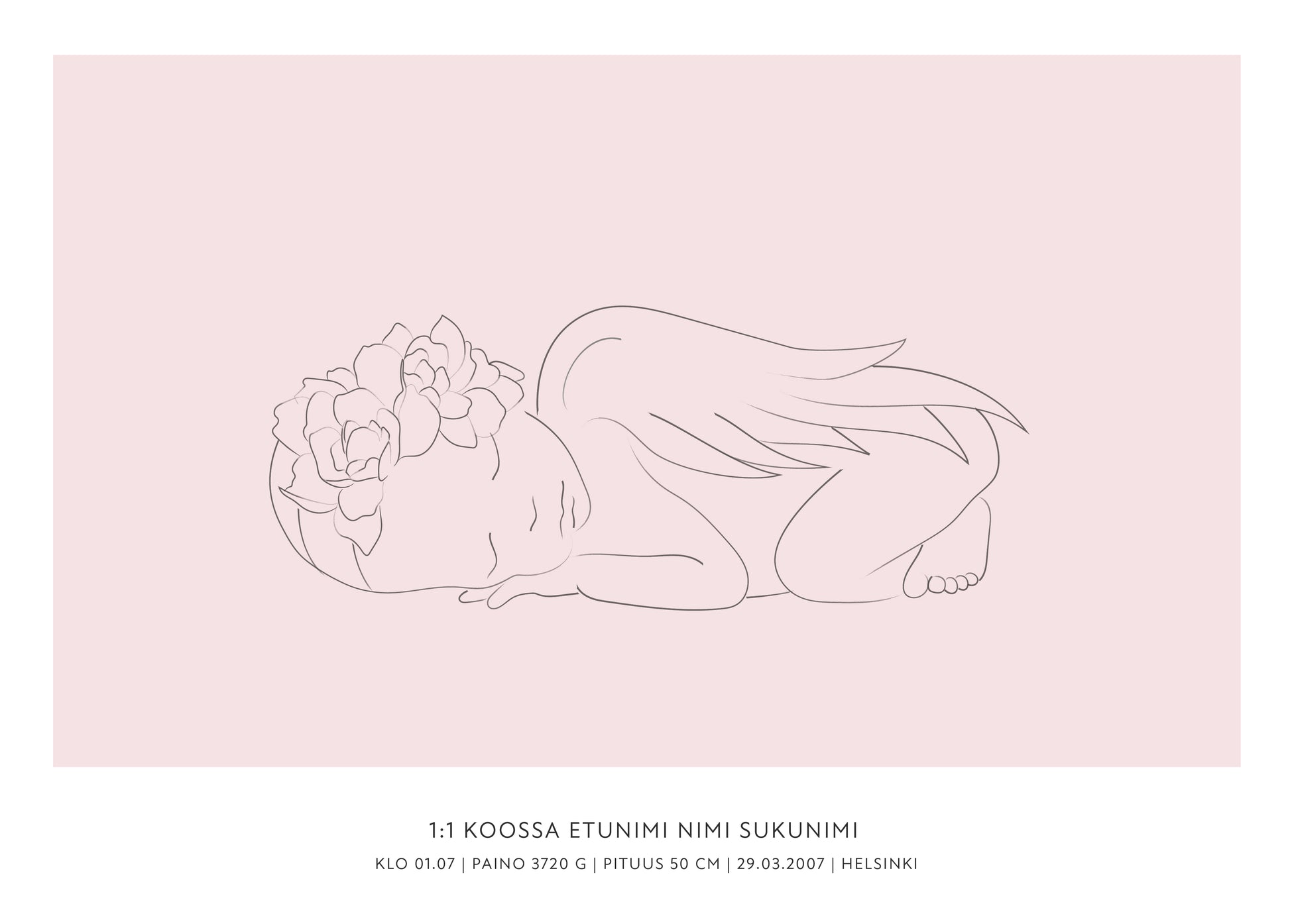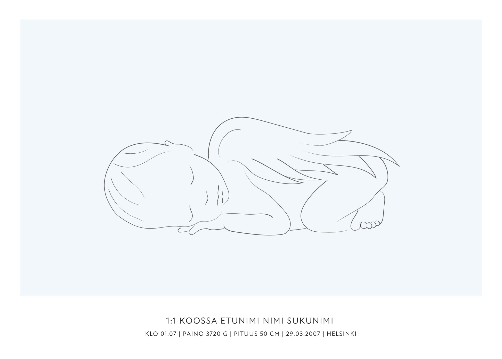 - Valitse haluamasi syntymäjuliste, johon haluat siivet. Kaikki syntymäjulisteemme löydät klikkaamalla tästä