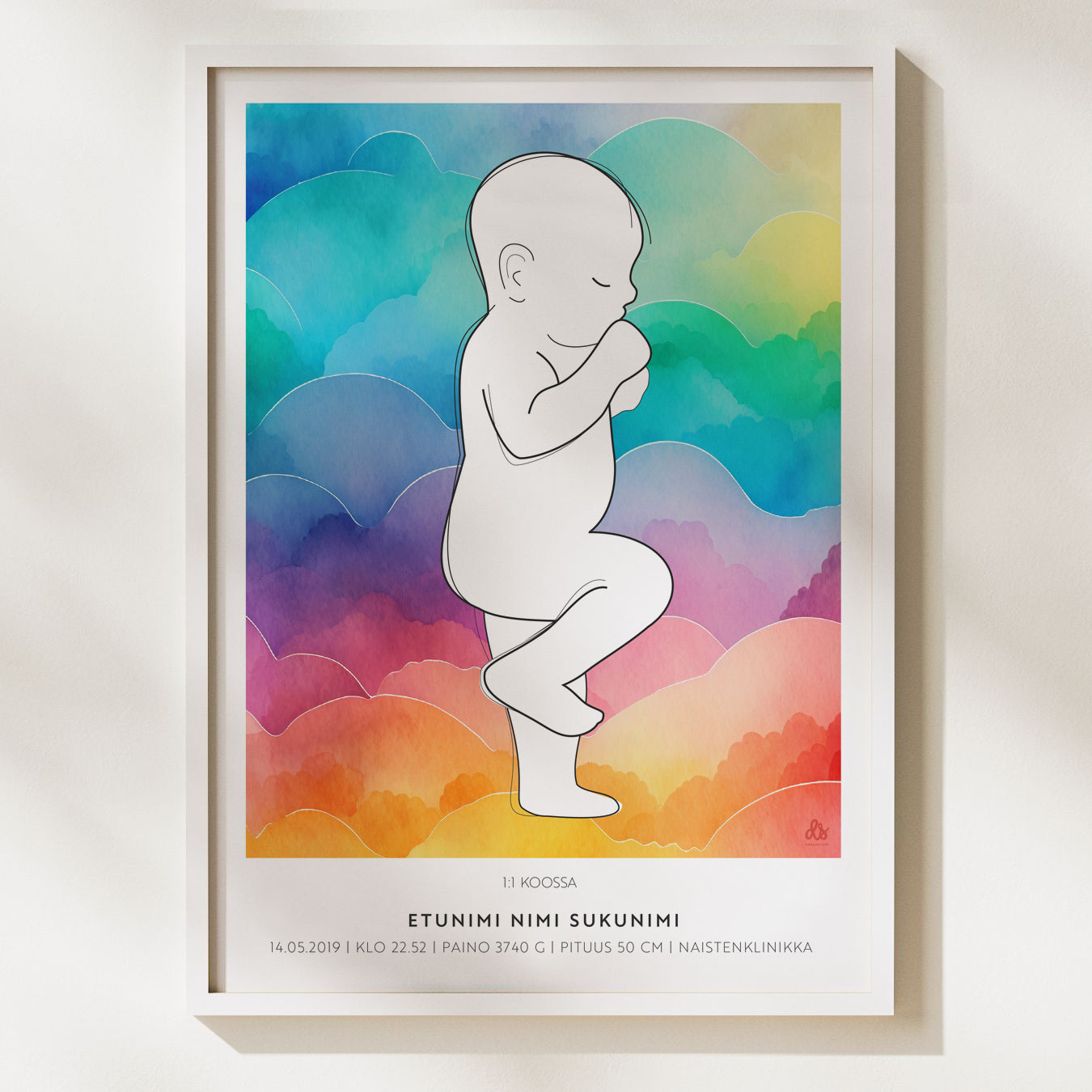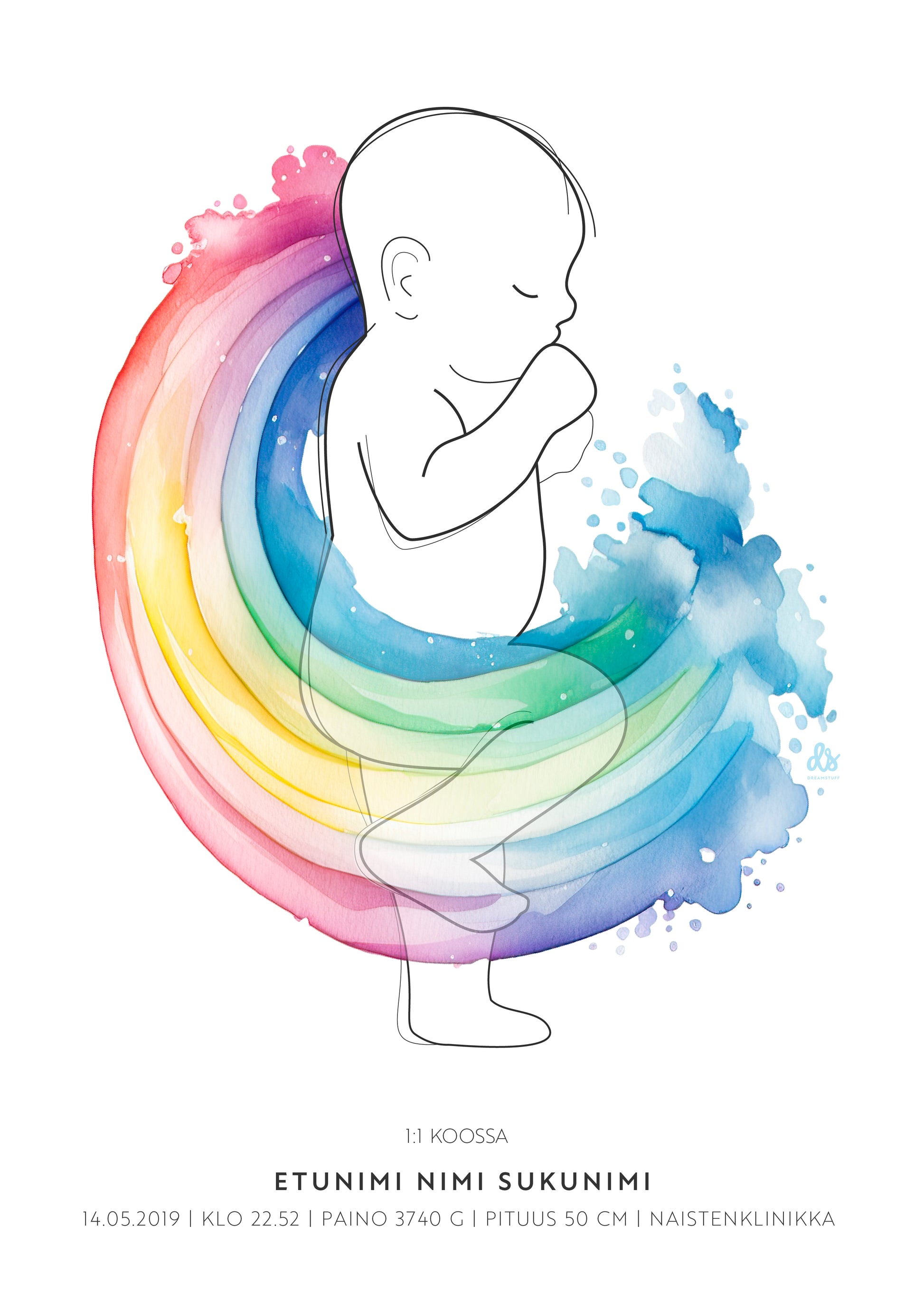 Uniikki syntymäjuliste sateenkaariperheille – muistoksi pienestä ihmeestä