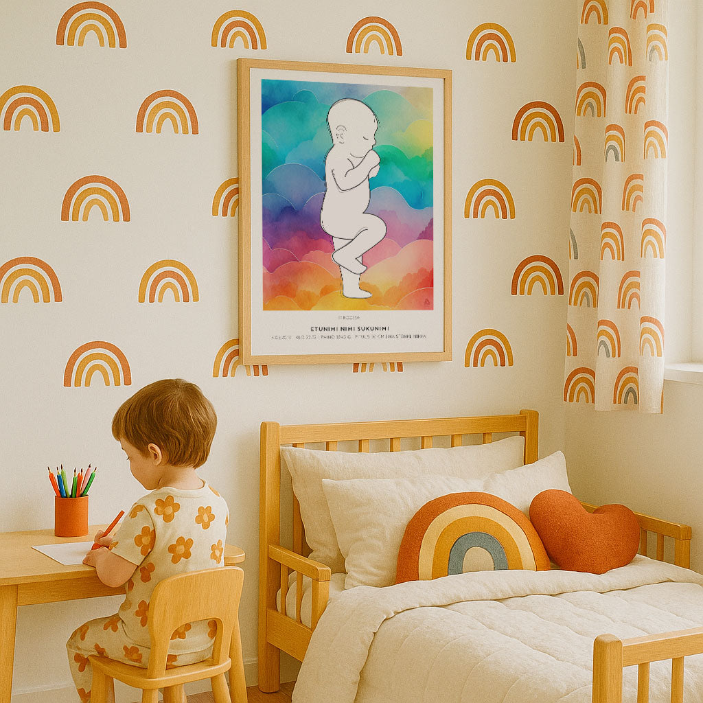 Talleta ikuisesti tuo uskomattoman kaunis hetki, kun lapsesi oli juuri maailmassa – pienin askelin mutta suurin sydämin. Syntymäjuliste – Sateenkaari on täydellinen lahja tai sisustuselementti, joka juhlistaa vanhemmuutta sateenkaariperheessä.