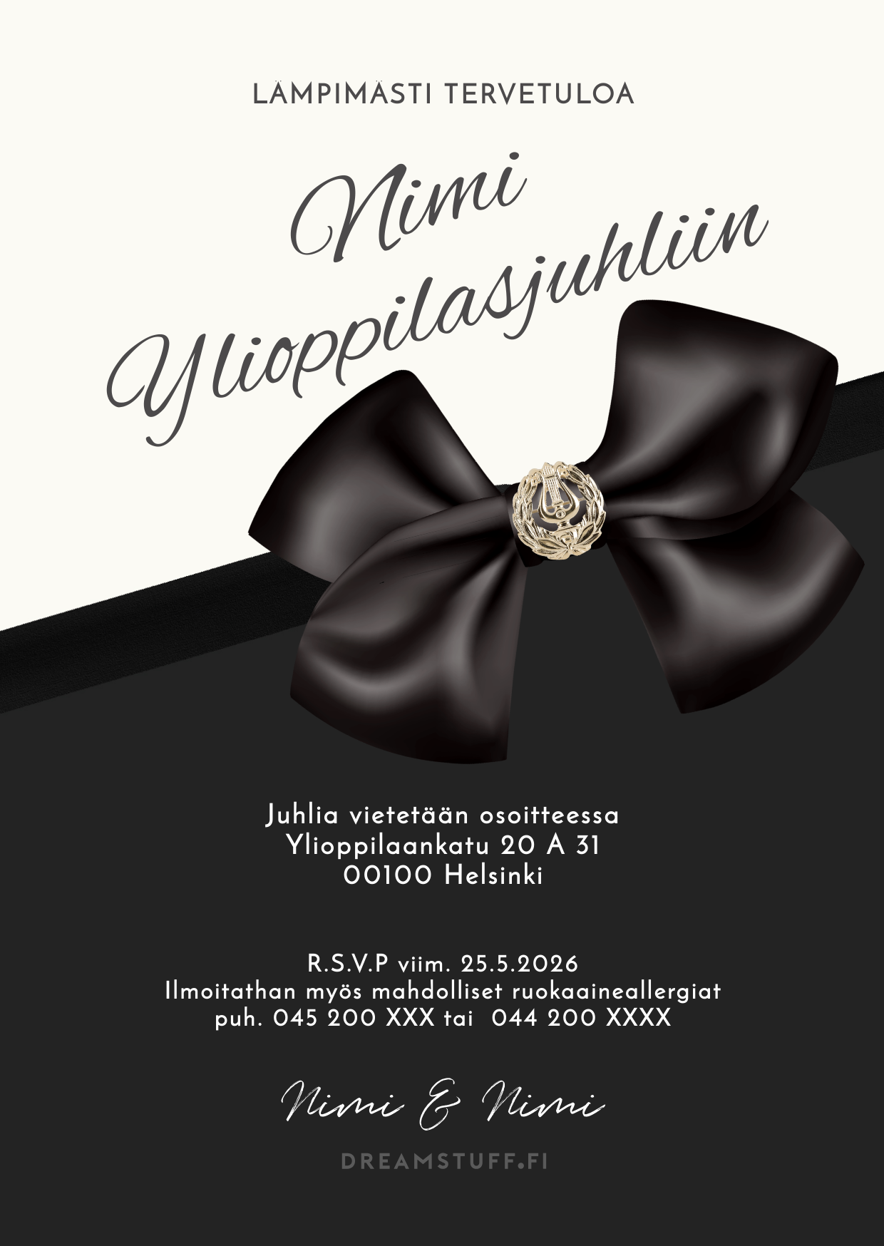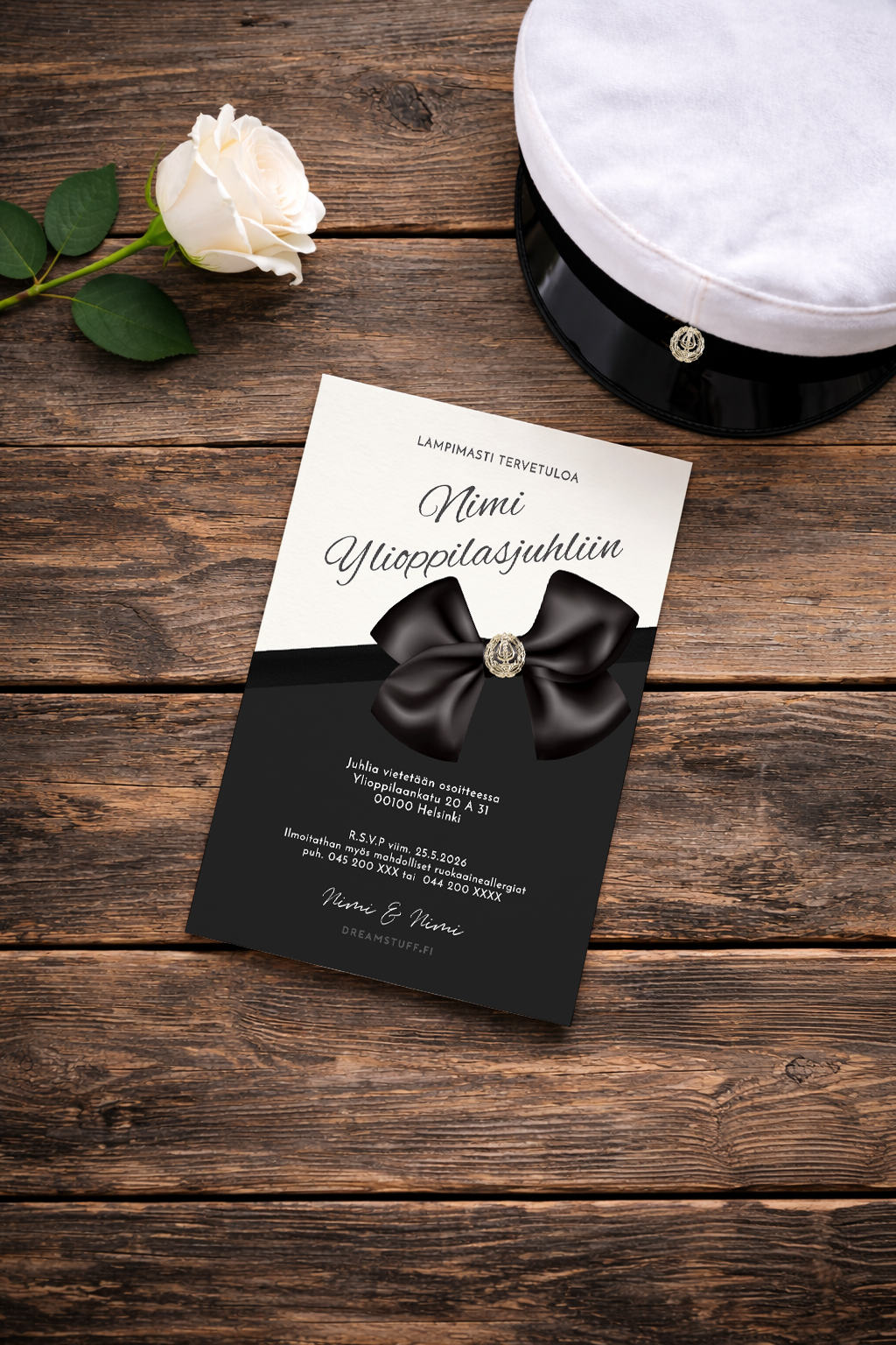 Kutsu on suunniteltu juhlistamaan ainutlaatuista hetkeä – ylioppilasjuhlaa – tyylillä, joka jää mieleen.